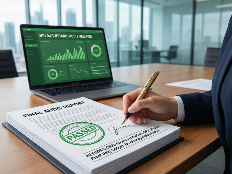 The Digital Proof Unit (DPU) is the batch-level record that enables verifiable ESG traceability for hygiene products sold in Europe. A DPU answers one question with legal certainty: